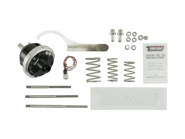 Using Turbosmart’s locking collar system, you can also quickly change your base spring selection from 5, all the way up to 26psi. The Nitronic guide and Hard Chromed Intermediate Rod, mated with the swivel joint system, ensure the best possible lower chamber seal for true twin port control strategies and unequalled actuation range and control.