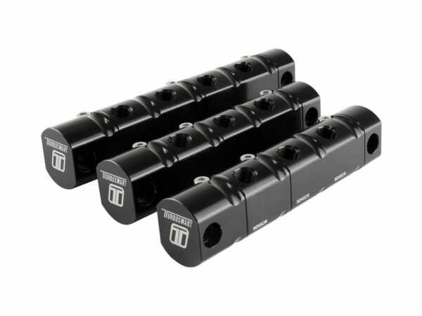 The Turbosmart Modular Reference Manifold, is an expandable, professional solution for remote mounting and sharing of engine (MAP) reference with multiple components such as Fuel Pressure Regulators, Maps Sensors, Boost Gauges, Wastegates and Brake Boosters. Manufactured from Billet (6262 T6) Aluminium and Black anodized, with 6 x 1/8 NPT Ports.